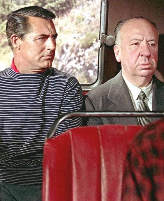 Cary Grant and Alfred Hitchcock in To Catch a Thief, 1955