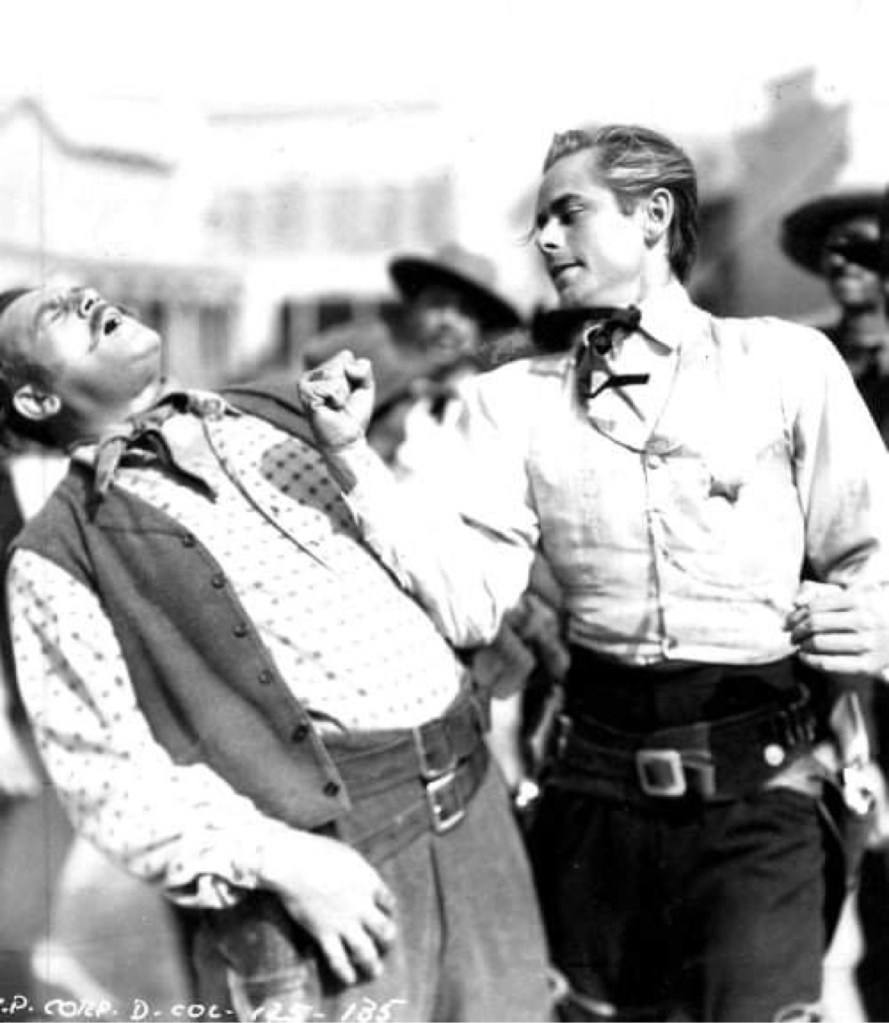 Glenn Ford photographed shooting a scene on the set of Go West, Young Lady, 1941.