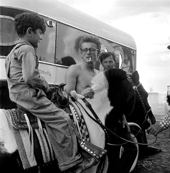James Dean on location for the film Giant in Marfa, Texas in 1955.