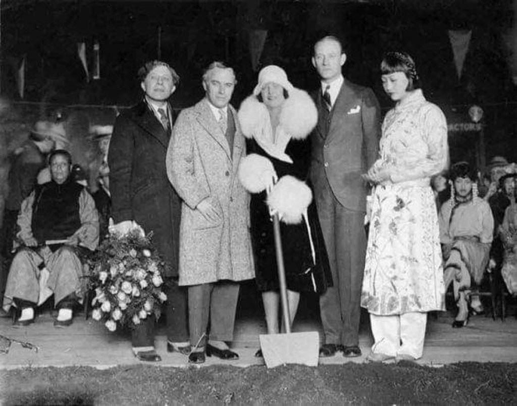 January 1926/ Groundbreaking ceremony for Grauman’s Chinese Theater, Sid Grauman, Charlie Chaplin, Norma Talmage, Conrad Nagel & Anna May Wong