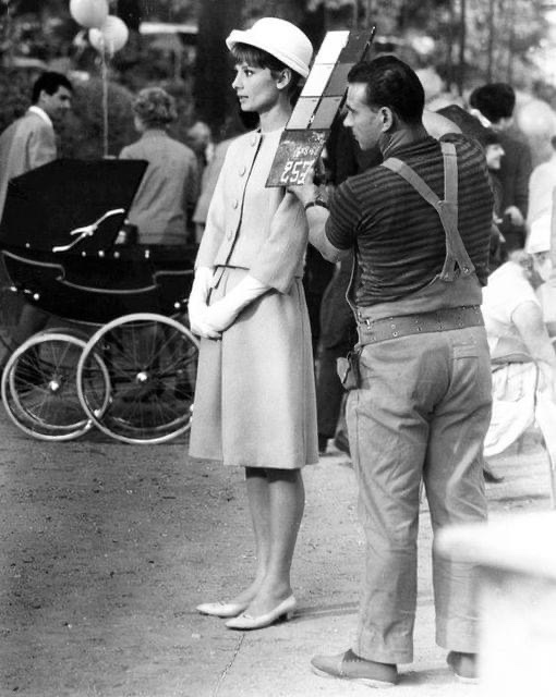 Audrey Hepburn on set in Paris during the filming of Paris When It Sizzles, 1962.