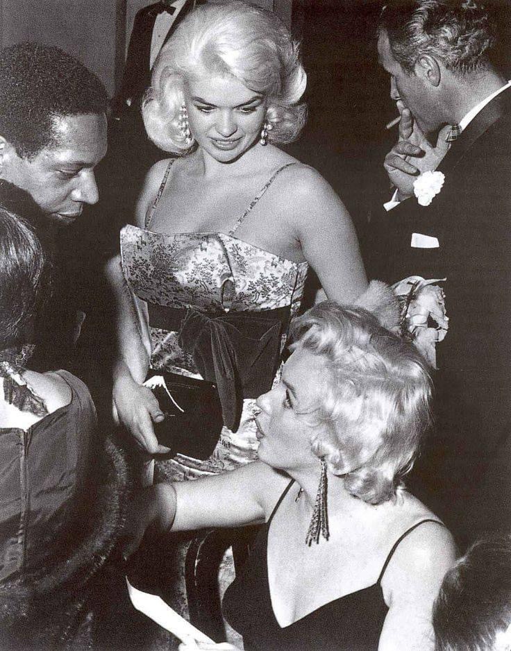 Jayne Mansfield and Marilyn Monroe at The Rose Tattoo Premiere (1955).